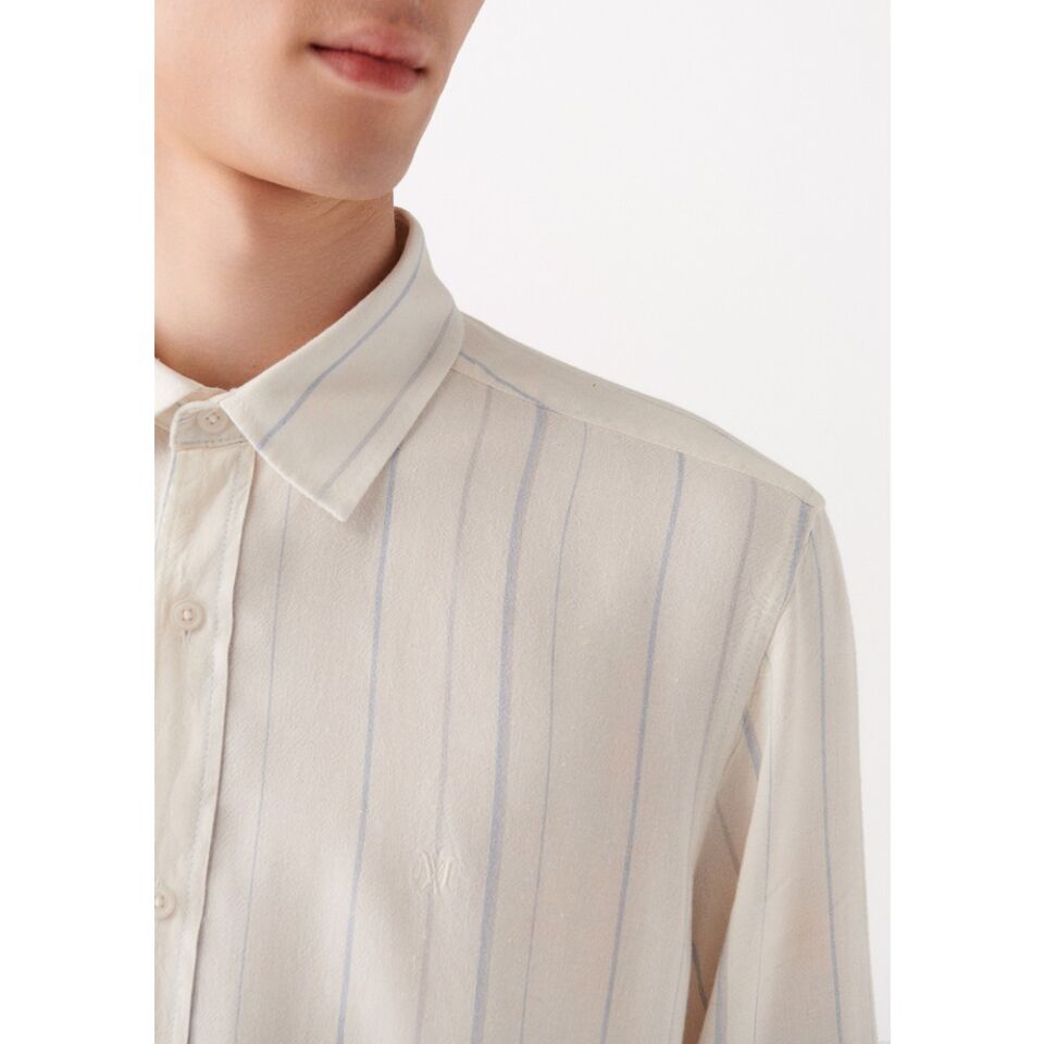 Mavi Çizgili Beyaz Gömlek